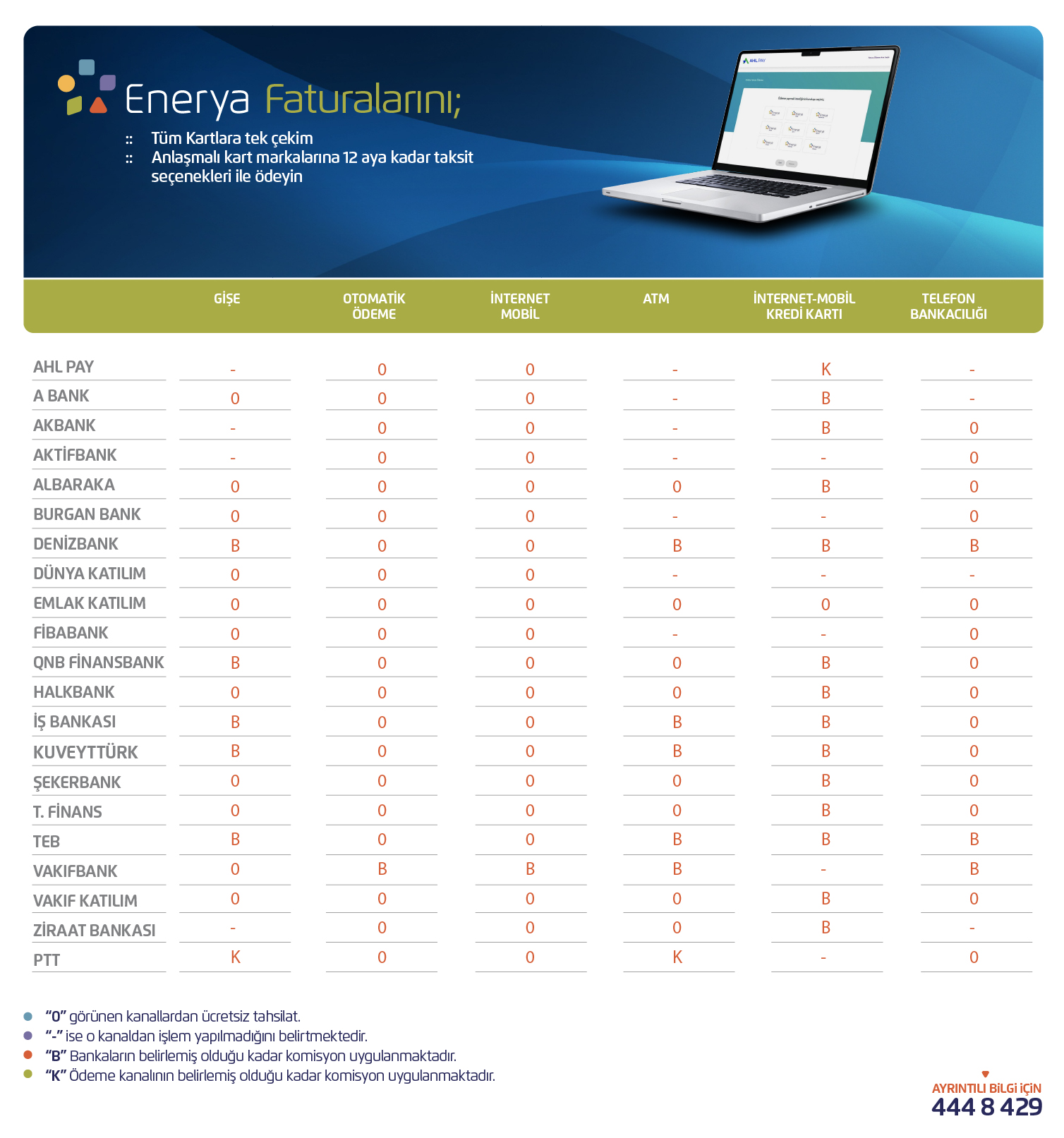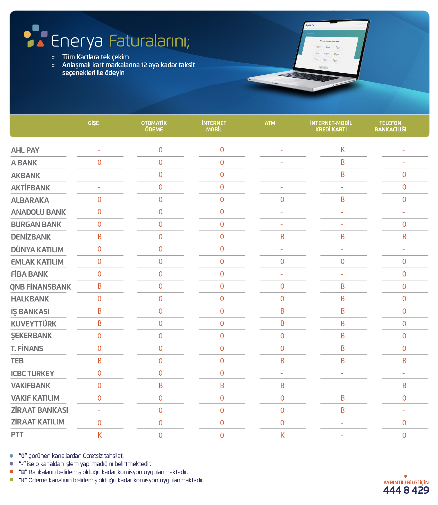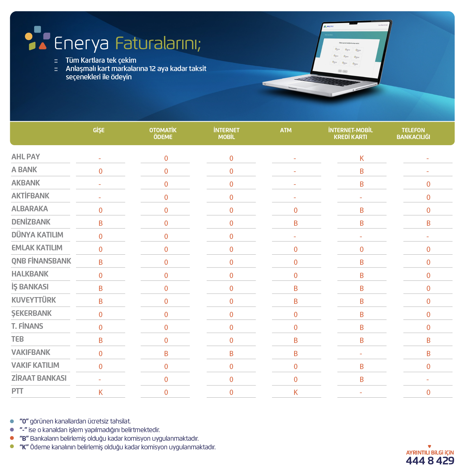 Enerya faturalarınızı AHL Pay güvencesiyle tüm kartlara tek çekim, anlaşmalı kart markalarına 12 taksit fırsatıyla ödemek için lütfen tıklayınız.